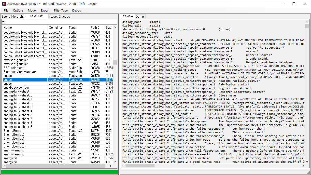 1. AssetStudio로 폴더 통째로 읽어 들여 수정할 파일을 찾는다.
