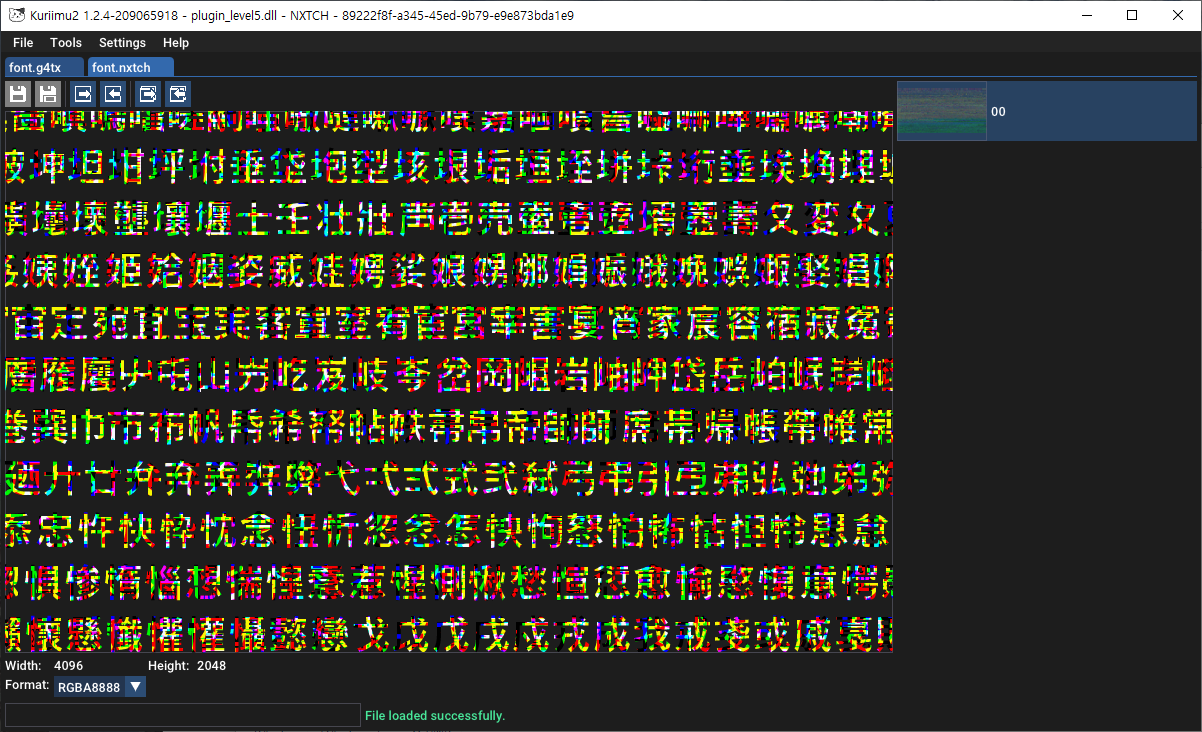 7. kuriimu2 프로그램으로 font.g4tx에 수정된 png를 import하고 저장