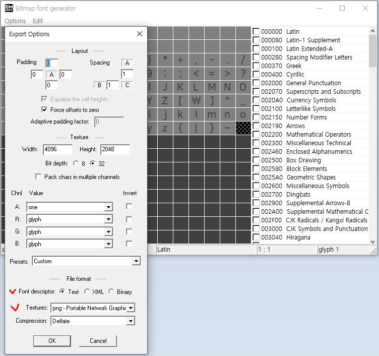 기존 font png 파일의 문자와 매칭해서 구조를 파악했다.